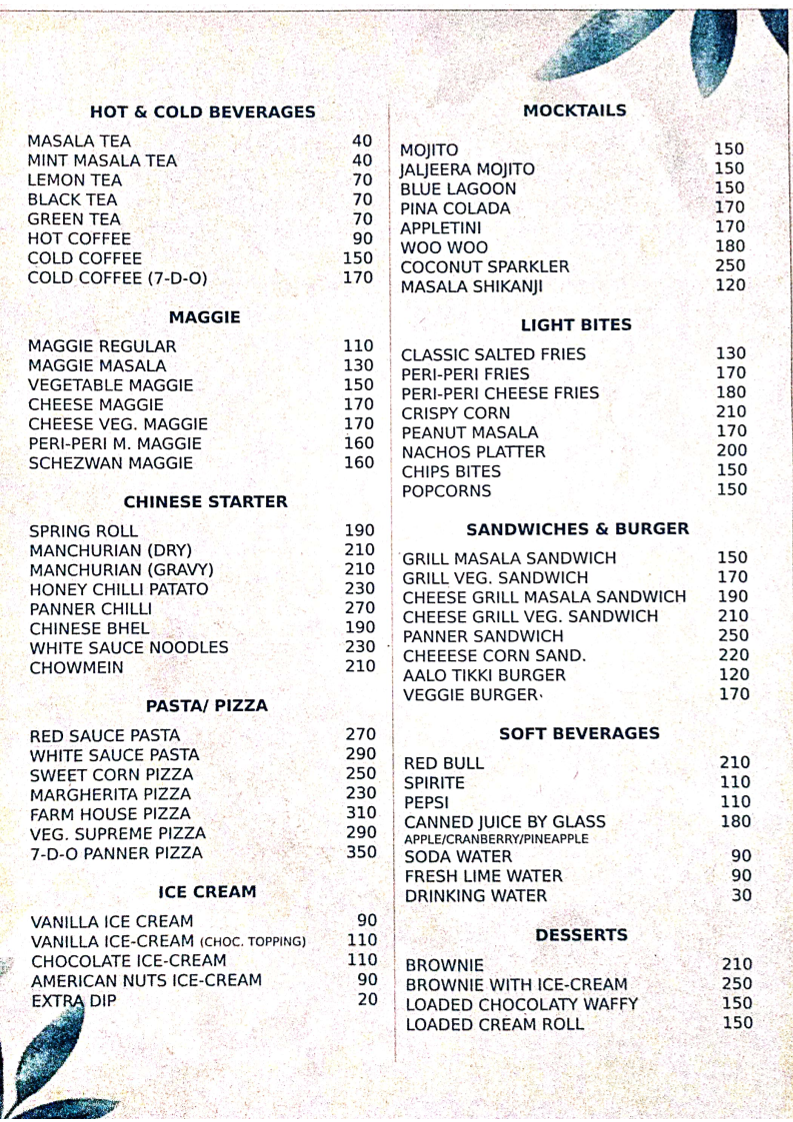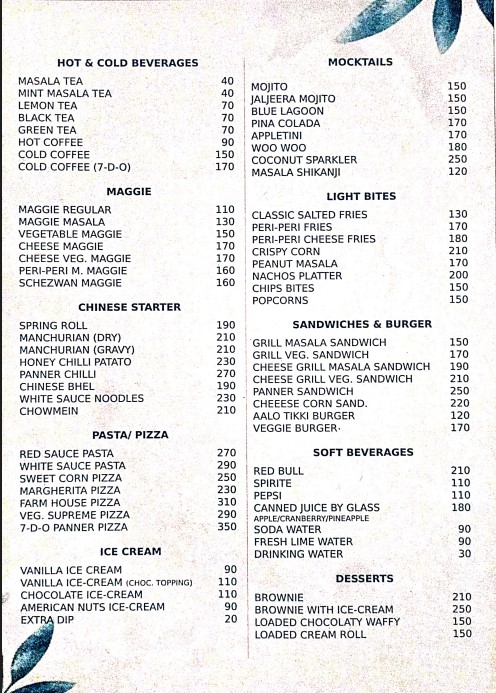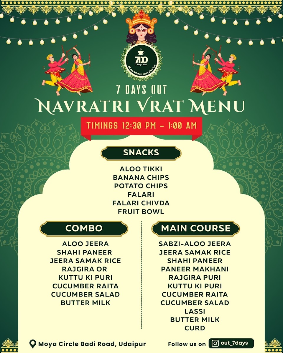7 DAYS OUT CAFE | Coffee Bar | Best Cafe Near Badi Lake Udaipur Menu